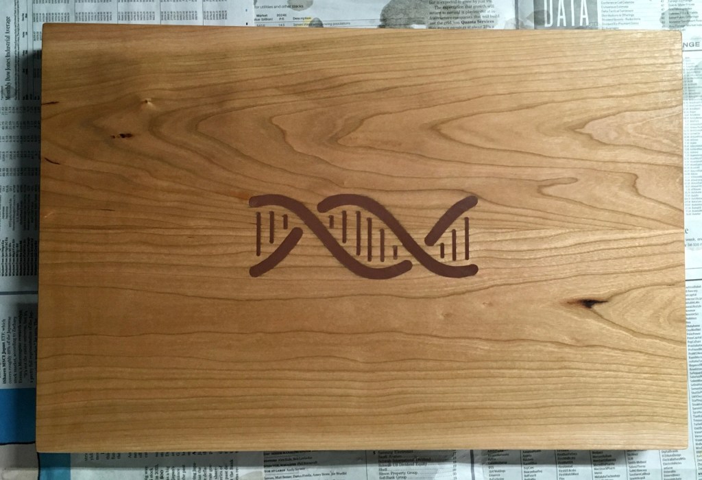 cherry tabletop + copper/epoxy chromosome inlay